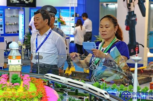 6月17日,參觀者正在參觀中國北車長客股份有限公司生產(chǎn)的列車模型。當(dāng)日,2014中國國際軌道交通展在上海新國際博覽中心開幕,來自中國、德國、法國等國家和地區(qū)的百余家軌道交通企業(yè)攜地鐵、輕軌、單軌、有軌電車、磁懸浮、市域鐵路、城際鐵路、地方鐵路、重載鐵路、高速鐵路等相關(guān)系統(tǒng)的新技術(shù)、新設(shè)備、新理念參展。