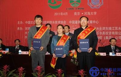 首屆農(nóng)業(yè)節(jié)水科技獎(jiǎng)獲獎(jiǎng)單位代表上臺(tái)領(lǐng)獎(jiǎng)