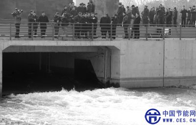 10點半左右,隨著市長王安順宣布“南水北調(diào)中線一期工程北京市通水成功”,明渠取水口正式開閘。清澈的江水從閘口迫不及待地奔涌而出,沖破薄冰,一路傾瀉,奔向遠(yuǎn)處的頤和園團(tuán)城湖。在那里,它們將被分入市內(nèi)各大水廠,再進(jìn)入北京的千家萬戶。人們圍聚在渠道兩岸,爭相觀看、拍照,興奮異常。