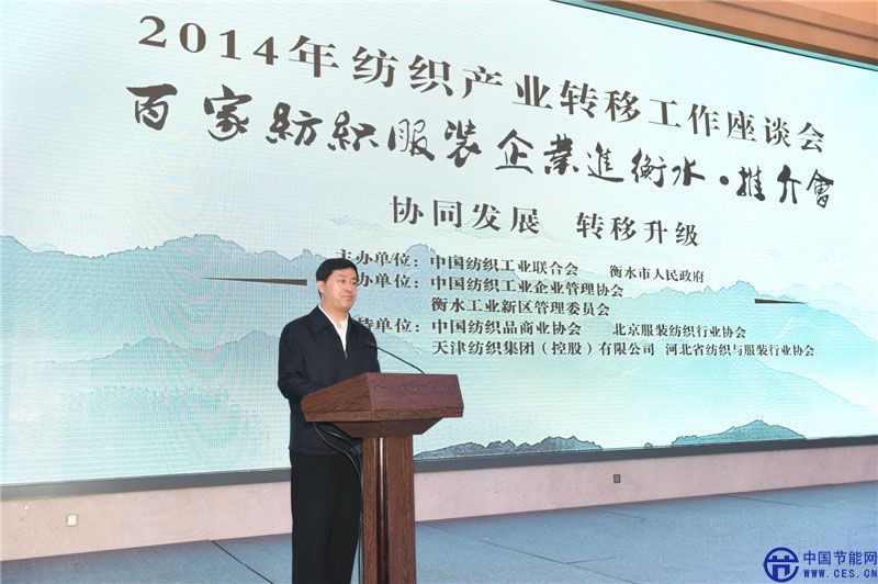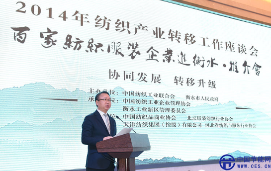 1月15日,2014年紡織產(chǎn)業(yè)轉(zhuǎn)移工作座談會暨百家紡織服裝企業(yè)進衡水推介會在河北衡水舉行。中國紡織工業(yè)聯(lián)合會會長王天凱,河北省副省長張杰輝,中國紡織工業(yè)聯(lián)合會副會長、中國紡織產(chǎn)業(yè)轉(zhuǎn)移工作辦公室主任孫瑞哲,中國紡織工業(yè)聯(lián)合會副秘書長、中國紡織產(chǎn)業(yè)轉(zhuǎn)移工作辦公室常務副主任楊峻,中國紡織服裝教育學會會長倪陽生,中國服裝協(xié)會專職副會長馮德虎,衡水市委書記李謙,衡水市長楊慧等領導出席會議。