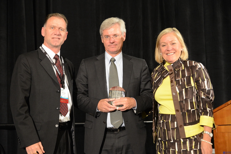 2014年全球能源效率論壇遠(yuǎn)見大獎頒獎。照片從左到右依次為:丹佛斯北美總裁John Galyen;丹麥駐美國大使 Peter Taksoe-Jensen;節(jié)能聯(lián)盟主席 Kateri Callahan