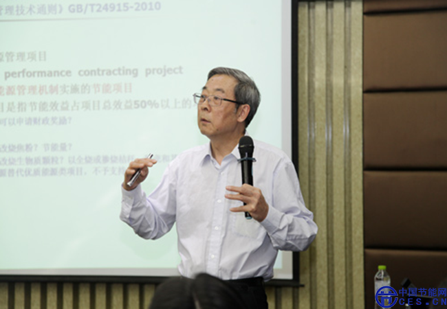 徐飛在授課中,以“節(jié)能減排的目標與任務、我國各類能源消費所占比例以及節(jié)能服務項目的業(yè)務流程中的各種風險”為引,重點對合同能源管理技術通則、合同能源管理項目篩選原則、節(jié)能量檢測和確認進行了深入淺出的分析。并結合自身多年來在節(jié)能服務領域的經驗針對合同能源管理的合同類型以及客戶傾向的服務模式、企業(yè)的融資渠道、合同能源管理在實施中遇到的障礙和風險與學員進行了深入的介紹。此外,他還列舉了十多項案例從八個方面針對節(jié)能量確定和監(jiān)測方法做出了探討。