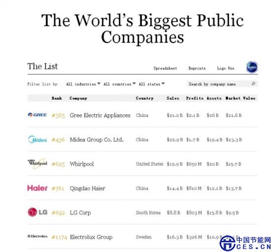 2015年5月份,中國家電產(chǎn)業(yè)贏得了一項巨大榮譽:在福布斯全球企業(yè)2000強榜單家電分類中,格力、美的分別奪得第一、第二,打敗了惠而浦、LG、伊萊克斯等全球家電巨鱷。