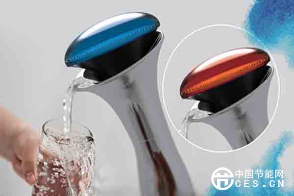 在水龍頭的頂部,帶有非常直觀的LED顯示屏。用戶只需要進行觸摸,就可以輕松出水。當使用冷水的時候,顯示屏就會呈現(xiàn)出藍色;使用熱水的時候,就會變?yōu)榧t色,非常直觀。