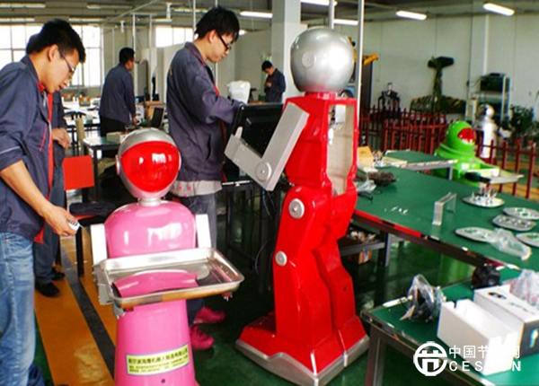 公司總經(jīng)理劉哈生邊走邊介紹:我這里有陸海空多功能機器人,它可以飛行、入海、沼澤地上救援的特殊功效。有高空作業(yè)機器人,代替人去完成高危作業(yè)。還有餐廳迎賓員、送餐、炒菜、點菜、煮水餃等機器人的一條龍服務。圖為工人正在組裝機器人。