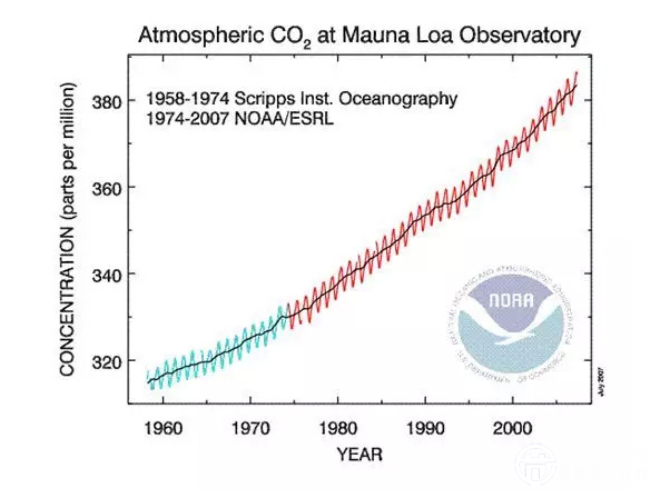 關(guān)于人這個物種的方方面面,學(xué)者們畫過各種曲線。人口增長曲線,糧食產(chǎn)量曲線,能源消耗曲線,森林面積曲線等等,它們都很重要,但還有一條非常重要的曲線就是大氣二氧化碳濃度曲線,因為這條曲線明確無誤地告訴我們,人類活動產(chǎn)生的二氧化碳是不能被大自然全部消化掉的,它們不斷在大氣中累積,增加了溫室效應(yīng),最終將改變地球的氣候,這個人類賴以生存的最重要的環(huán)境因素。這條曲線從1958年開始畫,一直畫到現(xiàn)在,而且還將不斷地畫下去。這位畫家名叫查爾斯·基林(Charles Keeling),1928年出生于美國的賓夕法尼亞州,1954年在西北大學(xué)獲得了化學(xué)博士學(xué)位。讀博士期間他對溫室效應(yīng)產(chǎn)生了興趣,這個效應(yīng)科學(xué)家很早就知道,但當(dāng)時流行的看法認(rèn)為,工業(yè)化產(chǎn)生的二氧化碳會被植物和海洋吸收掉,處于“動態(tài)平衡”的狀態(tài),所以我們不必擔(dān)心?;窒仁窃诩又莸纳衬锊蓸樱槐kU,最終決定在夏威夷大島的莫納魯阿山(Mauna Loa)建立一個觀測站?;智€成為了溫室效應(yīng)的核心標(biāo)志,它已被深深地刻在了位于華盛頓特區(qū)的美國國家科學(xué)院的墻上。