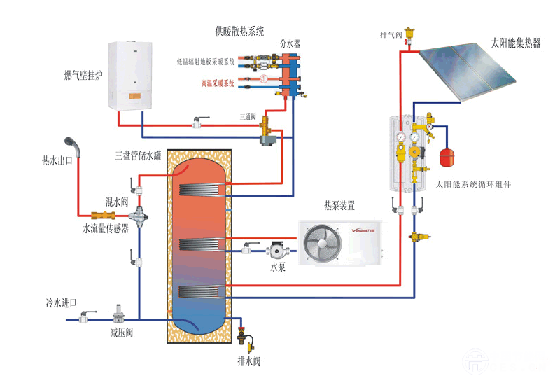 德國布朗茲維克科技大學(xué)的熱能動力學(xué)院基于復(fù)合CO2熱泵太陽能供熱系統(tǒng),建立了一種新型的供熱系統(tǒng)。去年六月份的德國環(huán)保周期間展出了這一系統(tǒng)的原型 (與此同時也展出了卡車和公交車的CO2空調(diào)系統(tǒng))。熱泵的供熱能力大約是2 kW,同時布朗茲維克科技大學(xué)聲稱這一系統(tǒng)比傳統(tǒng)的利用燃燒供熱的方式能效高。由于建筑物供熱只耗費很少一部分能量,因此熱水供應(yīng)系統(tǒng)的能量需求問題受到 更多關(guān)注,尤其是對于高絕熱標(biāo)準(zhǔn)的房屋而言。這也使得將熱泵的工作溫度提高到55-60°C,即令CO2制冷劑發(fā)揮最高能效成為可能。