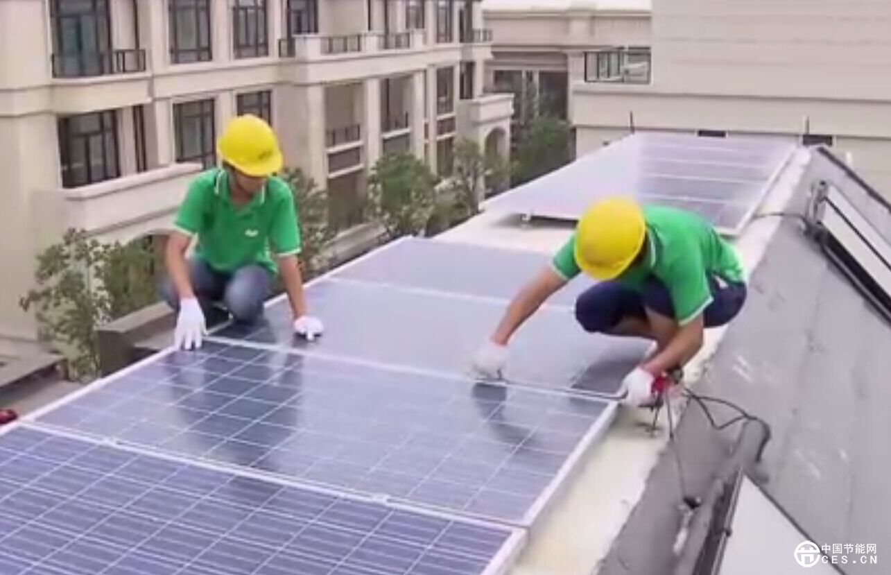 記者在該小區(qū)看到,已有不少房屋完成了分布式光伏發(fā)電設(shè)備的安裝,工作人員正在屋頂對(duì)光伏板進(jìn)行最后調(diào)試。
