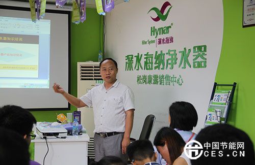 2個多小時的培訓中,深水海納凈水器市場總監(jiān)王東才針對松崗片區(qū)消費者的購買力、消費習慣、市場現(xiàn)狀等實際情況,就銷售技巧和促銷模式等方面做了詳細的分析講解。深水海納技術(shù)研發(fā)部部長雷培則詳細介紹了天姿、天使、天悅等若干款明星產(chǎn)品的工作原理、功能和賣點。