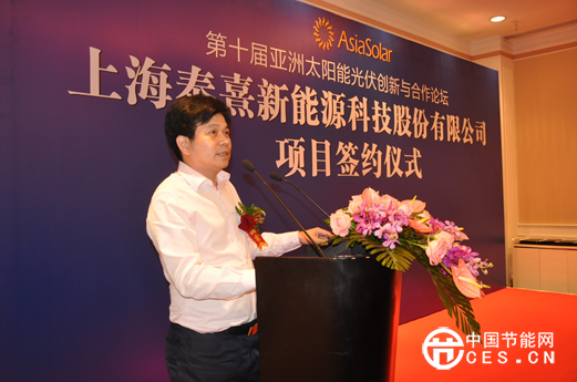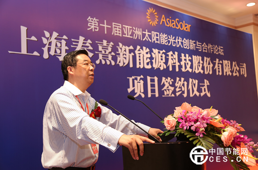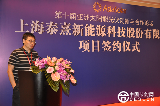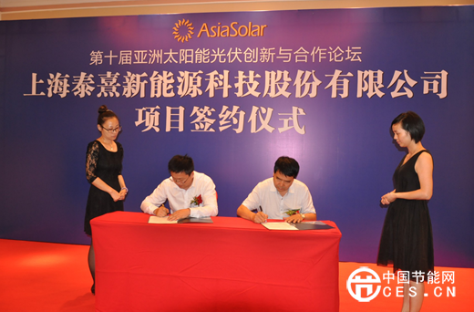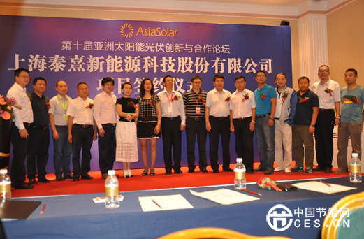 2015年8月25日,上海泰熹科技股份有限公司項目簽約儀式在上海國際會議中心舉行。國家發(fā)改委國際合作中心國際能源研究所所長王進、中國機電產(chǎn)品進出口商會太陽能光伏產(chǎn)品分會秘書長周元、上海泰熹新能源科技股份有限公司董事長丁列平以及多位泰熹合作伙伴和與會嘉賓出席了該儀式。