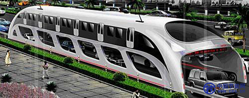 “立體快巴”,學(xué)名寬體高架電車,綜合快速公交BRT和地鐵機(jī)車的原理,利用城市交通主干道2米以上至立交橋、人行天橋4.5米以下高度空間運(yùn)送乘客,橫跨兩條行車道,行車道路面鋪設(shè)鋼軌,底部鏤空不影響小汽車穿行,采用全電力驅(qū)動(dòng)。設(shè)計(jì)車高約4.5米,寬約6米,長約43米,最高時(shí)速為60-80公里每小時(shí)。