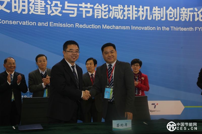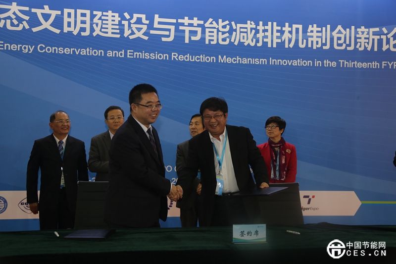 國(guó)家節(jié)能中心主任賈復(fù)生與各大企業(yè)的簽約現(xiàn)場(chǎng)