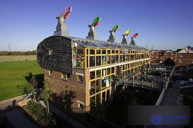 貝丁頓“零能耗發(fā)展”社區(qū)位于倫敦附近的薩頓(Sutton)市,于2002年建成,占地1.7公頃,包括271套公寓和2369平方米的辦公、商用面積。該項目被譽為英國最具創(chuàng)新性的住宅項目,其理念是在不犧牲現(xiàn)代生活舒適性的前提下,建造節(jié)能和環(huán)保的和諧社區(qū)。