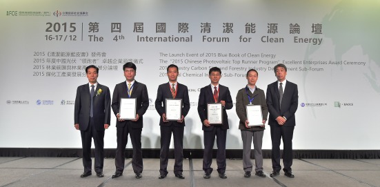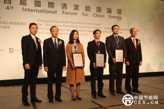 2015年度光伏“領(lǐng)跑者”卓越企業(yè)頒獎典禮于12月16日在澳門“第四屆國際清潔能源論壇”期間成功舉辦,頒獎嘉賓包括中國經(jīng)濟社會理事會副主席,全國政協(xié)常委徐振寰、中國科學(xué)院院士何祚庥、中央人民政府駐澳門特別行政區(qū)聯(lián)絡(luò)辦公室秘書長王新東、國家電投中央研究院副院長李曉民、國際清潔能源論壇(澳門)常務(wù)副理事長袁國林、澳門基金會行政委員會副主席張裕、澳門中華總商會副理事長黃國勝、澳門特別行政區(qū)政府能源業(yè)發(fā)展辦公室副主任盧深昌、國際清潔能源論壇(澳門)理事長,全國政協(xié)委員蘇樹輝,來自國際能源領(lǐng)域的300多位代表共同出席了頒獎典禮。