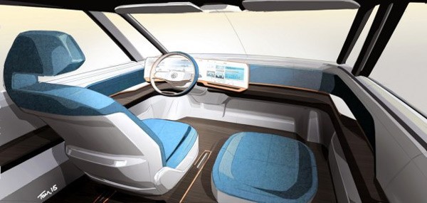 車內(nèi)來(lái)看,這款概念車采用了極簡(jiǎn)的設(shè)計(jì)風(fēng)格,副駕駛座椅向后,而后排沒(méi)有采用傳統(tǒng)座椅,而更像是放入了一套“沙發(fā)”,同時(shí)我們看到車內(nèi)幾乎沒(méi)有使用傳統(tǒng)的按鈕和旋鈕,而是整體采用了多塊大尺寸的液晶屏,駕駛席一側(cè)的屏幕為7.9英寸,而副駕一側(cè)的屏幕為5.9英寸。此外該車還配備了e-Mirror電子后視鏡,新一代的人機(jī)交互界面、新多功能方向盤,并可以將內(nèi)部的氛圍燈進(jìn)行個(gè)性化設(shè)定。