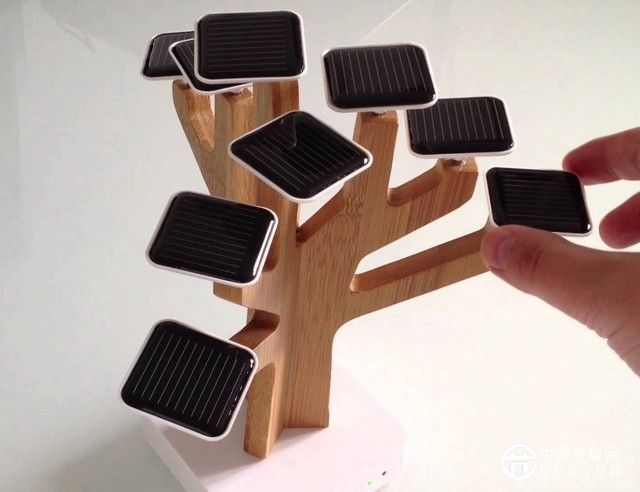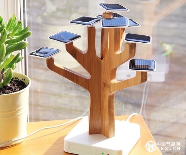 這款新式太陽能充電器的外觀設(shè)計十分有趣,采用了樹木的造型。在木質(zhì)的樹干上,帶有很多太陽能電池板,數(shù)量達(dá)到9個之多。在底座上,為內(nèi)置電池盒,白色的風(fēng)格十分優(yōu)雅。在電池盒上,帶有綠色和紅色指示燈,可以了解到內(nèi)置電池充電的情況。