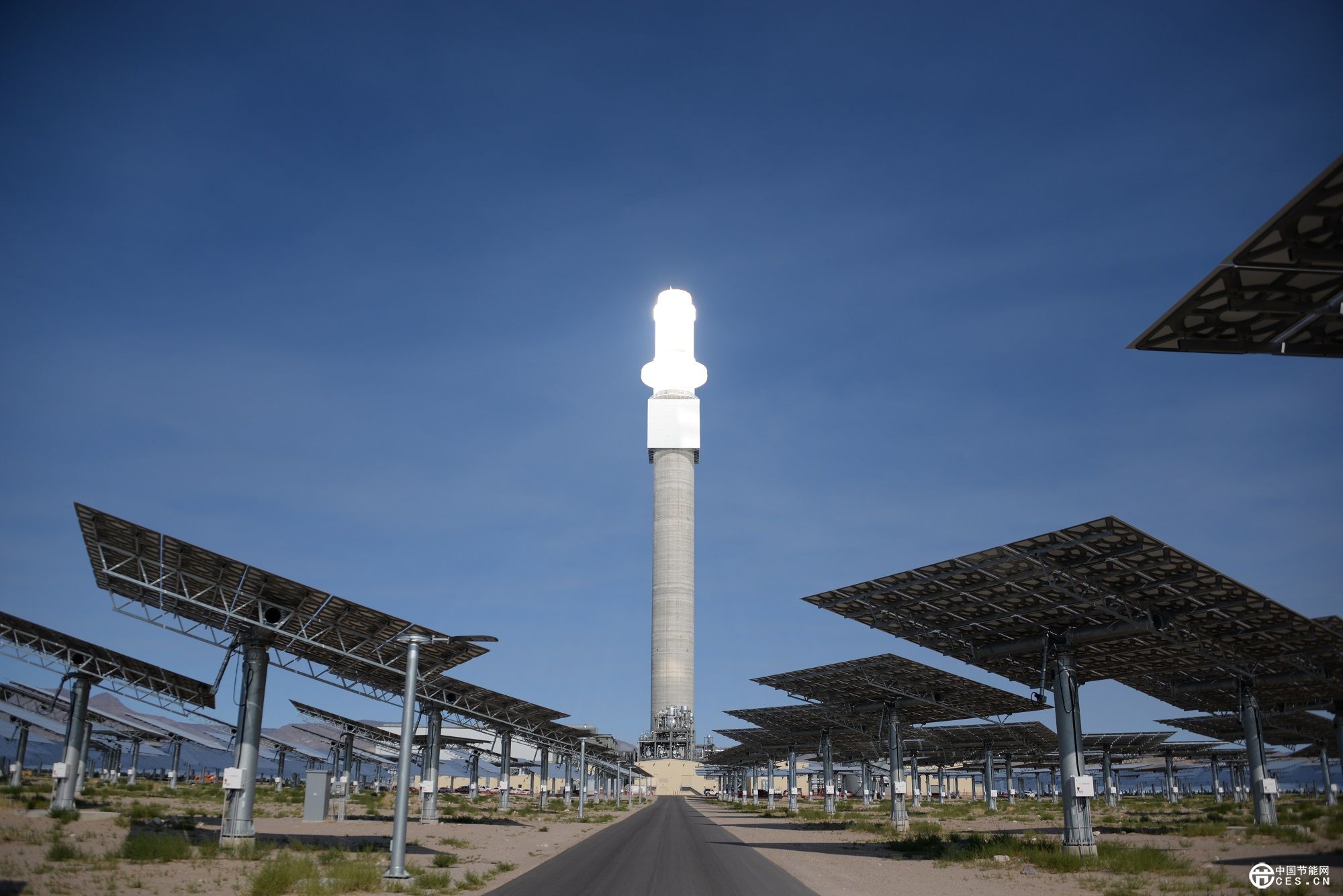 SolarReserve位于美國內(nèi)華達(dá)州的110兆瓦的“新月沙丘太陽能計劃”共設(shè)置10,347片的大型追日鏡。透過臺達(dá)太陽能追日自動化系統(tǒng)控制每一片追日鏡,根據(jù)日照角度及每個追日鏡所在不同的位置,將日光準(zhǔn)確反射到中央540英尺高的發(fā)電塔上高超過100英尺的大型接受器。接受器內(nèi)的熔鹽(moltensalt)吸收來自陽光的熱量后其溫度將升高至1050°F(566℃)以上,然后流入儲存槽,將熱能儲存起來,作為蒸氣渦輪發(fā)電機(jī)組的熱源,以進(jìn)行發(fā)電。此熔鹽儲能系統(tǒng)可以儲存10小時的日照所產(chǎn)生的太陽能,即使在天候不良或夜間時段,也能夠正常供電。