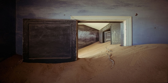 納米比亞境內(nèi),納米布沙漠的黃沙灌入廢棄的民居。