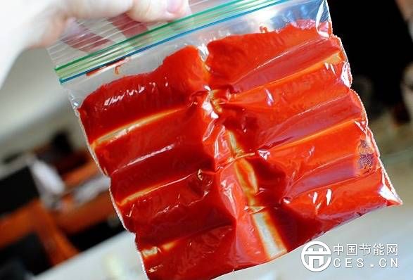 像番茄醬、火鍋底料這類調(diào)料,一次用的量往往是固定的,裝在塑料袋里,放進(jìn)冰箱里冰成固態(tài),再分出每次要用的量,拿取都方便~