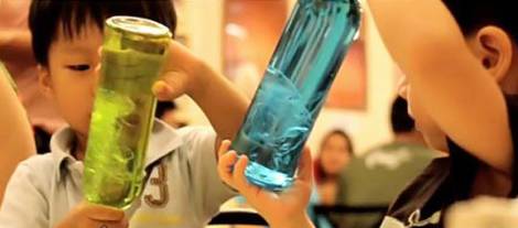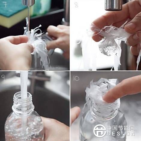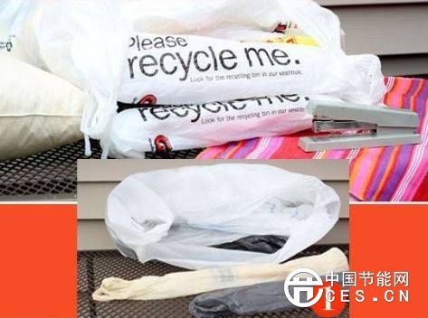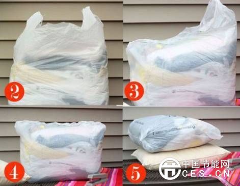 將塑料擰成條狀,一條一條的塞進(jìn)一個大的塑料袋里,最后再將兩端封口