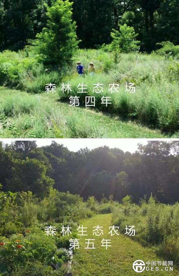 這是森林生態(tài)農(nóng)場第一年、第二年、第四年,第五年的樣子。
