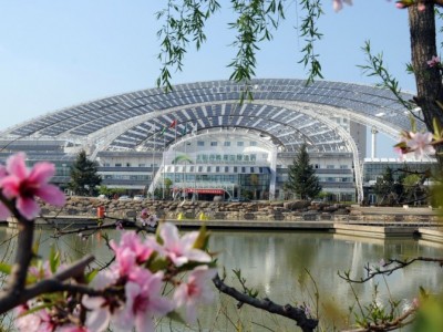 建筑面積達(dá)到7.5萬平方米,集展示、科研、辦公、會議、培訓(xùn)、賓館等功能于一身,采用全球首創(chuàng)太陽能熱水供應(yīng)、采暖、制冷、光伏發(fā)電等與建筑結(jié)合技術(shù)。圖為夜色中的世界最大太陽能辦公大廈。