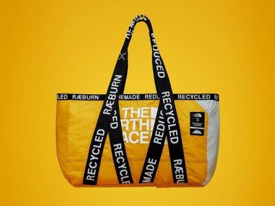 三款設(shè)計(jì)分別是兩款托特包,其中一款為大帆布袋風(fēng)格,此外還有一款抽繩雙肩包,三款包袋的主色調(diào)全部為黃色。整個(gè)系列的標(biāo)志性視覺元素,是 The North Face 的標(biāo)志圖案和 logo,同時(shí)搭配“RÆBURN/RECYCLED”字樣的背帶。每款包還都設(shè)有內(nèi)袋,提供額外儲(chǔ)物空間,更值得一提的是,三款包都可以折疊后放入小包收納,非常方便。