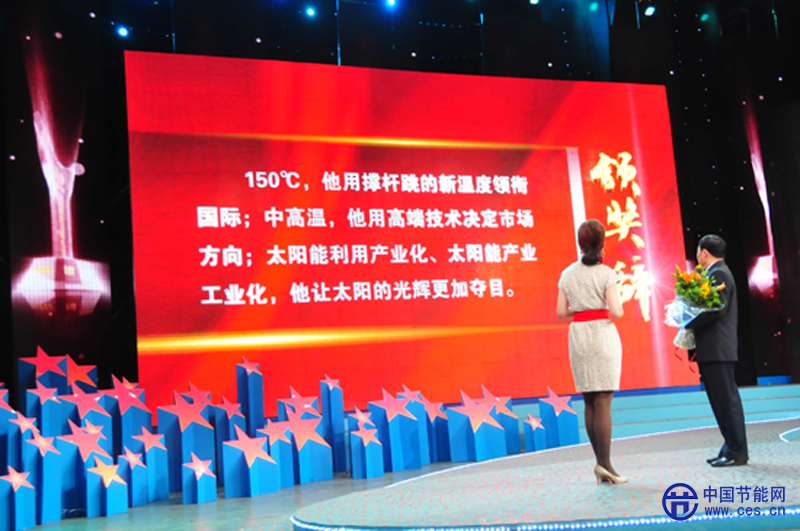 評委會給申總的頒獎詞是:“150℃,他用撐桿跳的新溫度領(lǐng)銜國際;中高溫,他用高端技術(shù)決定市場方向;太陽能利用產(chǎn)業(yè)化、太陽能產(chǎn)業(yè)工業(yè)化,他讓太陽的光輝更加奪目。”