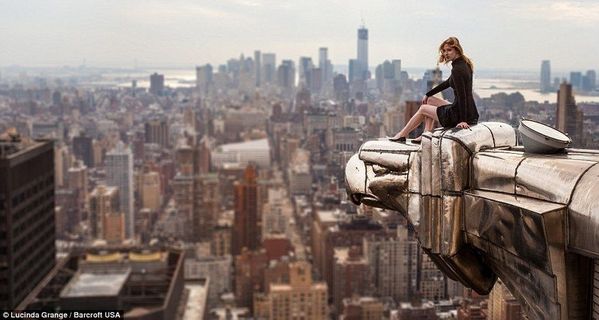 圖為Lucinda身著禮服站在紐約克萊斯勒大樓的頂端。