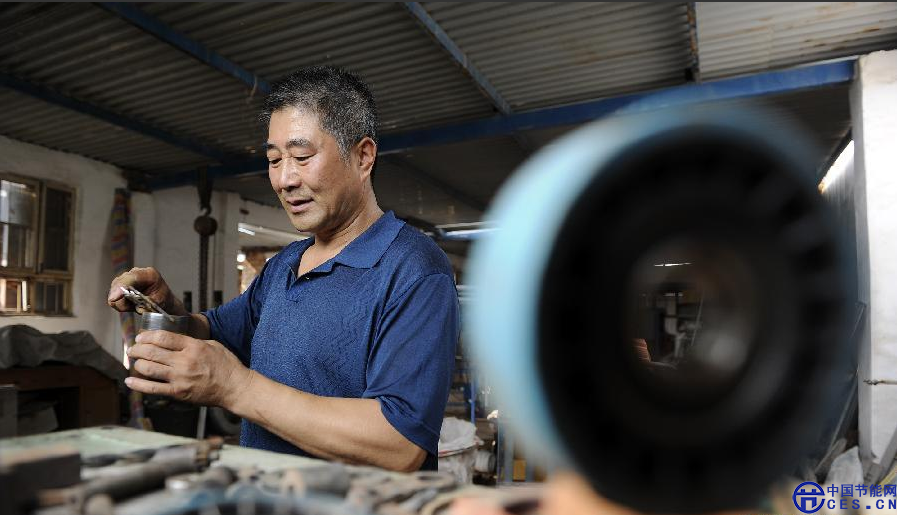 在寧夏賀蘭縣洪廣鎮(zhèn),丁江山在簡陋的廠房里研究創(chuàng)造自己的新作品。