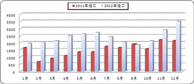 年初開始,美國頁巖氣革命如火如茶,頁巖氣發(fā)電量大增,從而對燃煤產(chǎn)生替代效應(yīng);而世界經(jīng)濟(jì)低迷則直接影響國際煤炭需求,國際市場煤炭供求形勢寬松。之前受我國需求帶動,國際煤價暴漲,一些企業(yè)拼命增加煤炭產(chǎn)量,此時已經(jīng)開始陸續(xù)投產(chǎn),更進(jìn)一步導(dǎo)致市場供應(yīng)過剩的局面。低廉的國際煤炭不斷涌來,2012年我國煤炭進(jìn)口激增,單月進(jìn)口量率創(chuàng)新高。