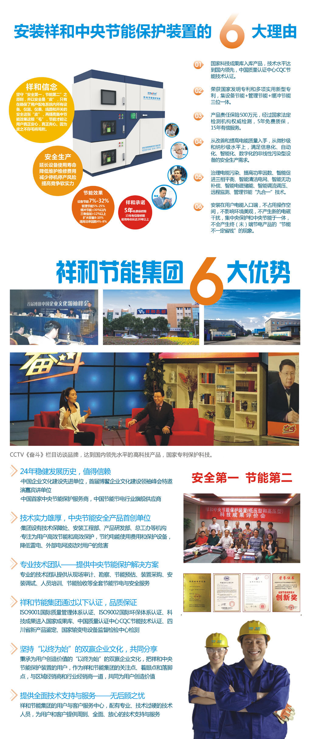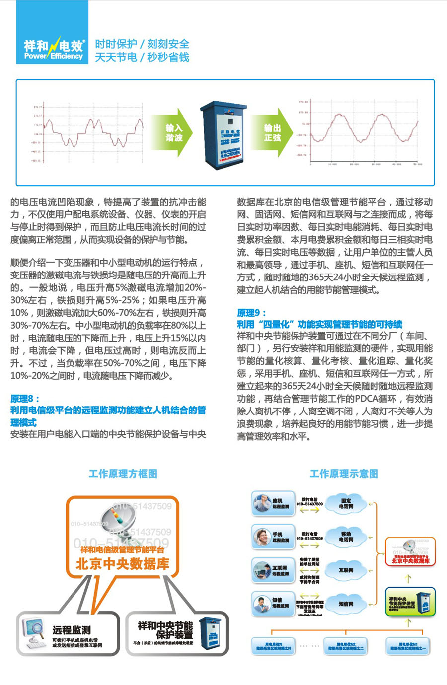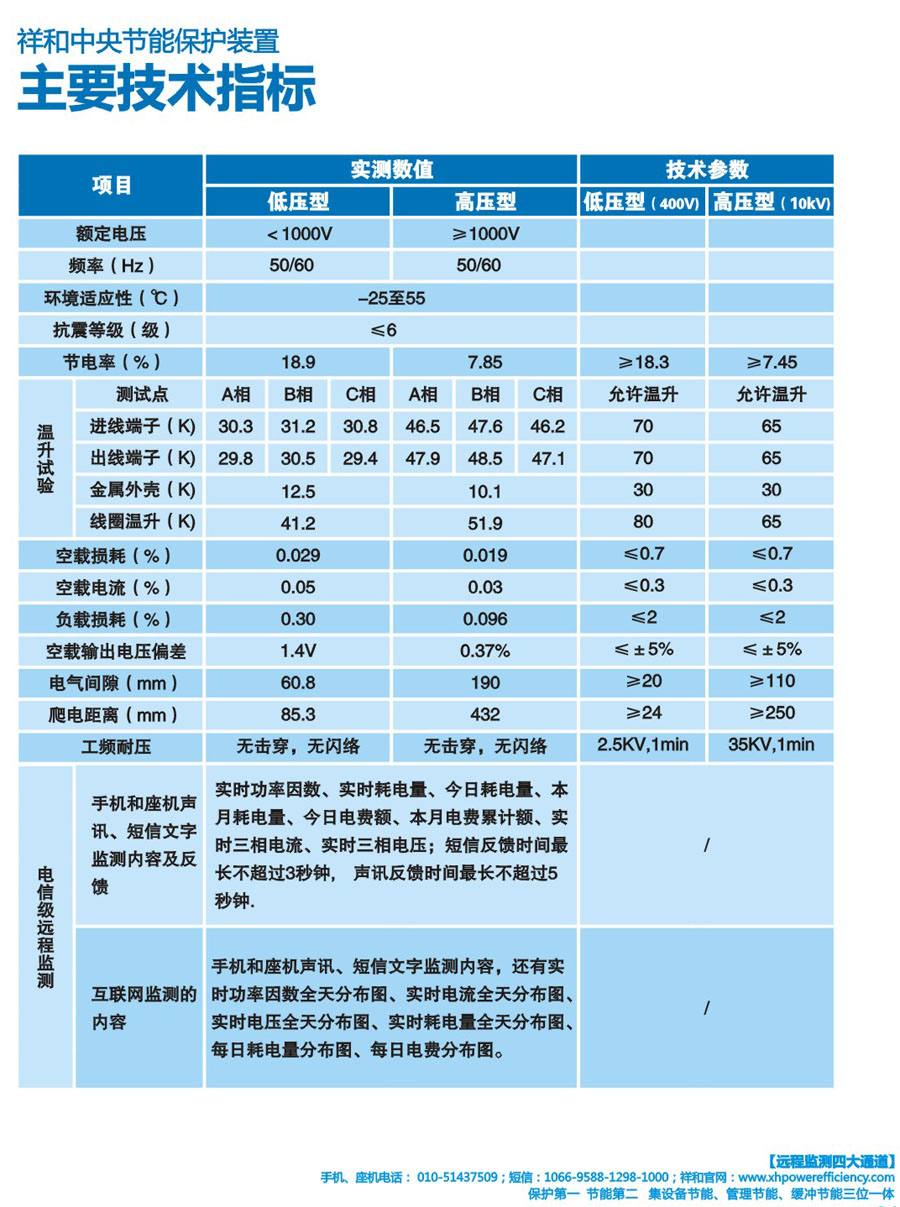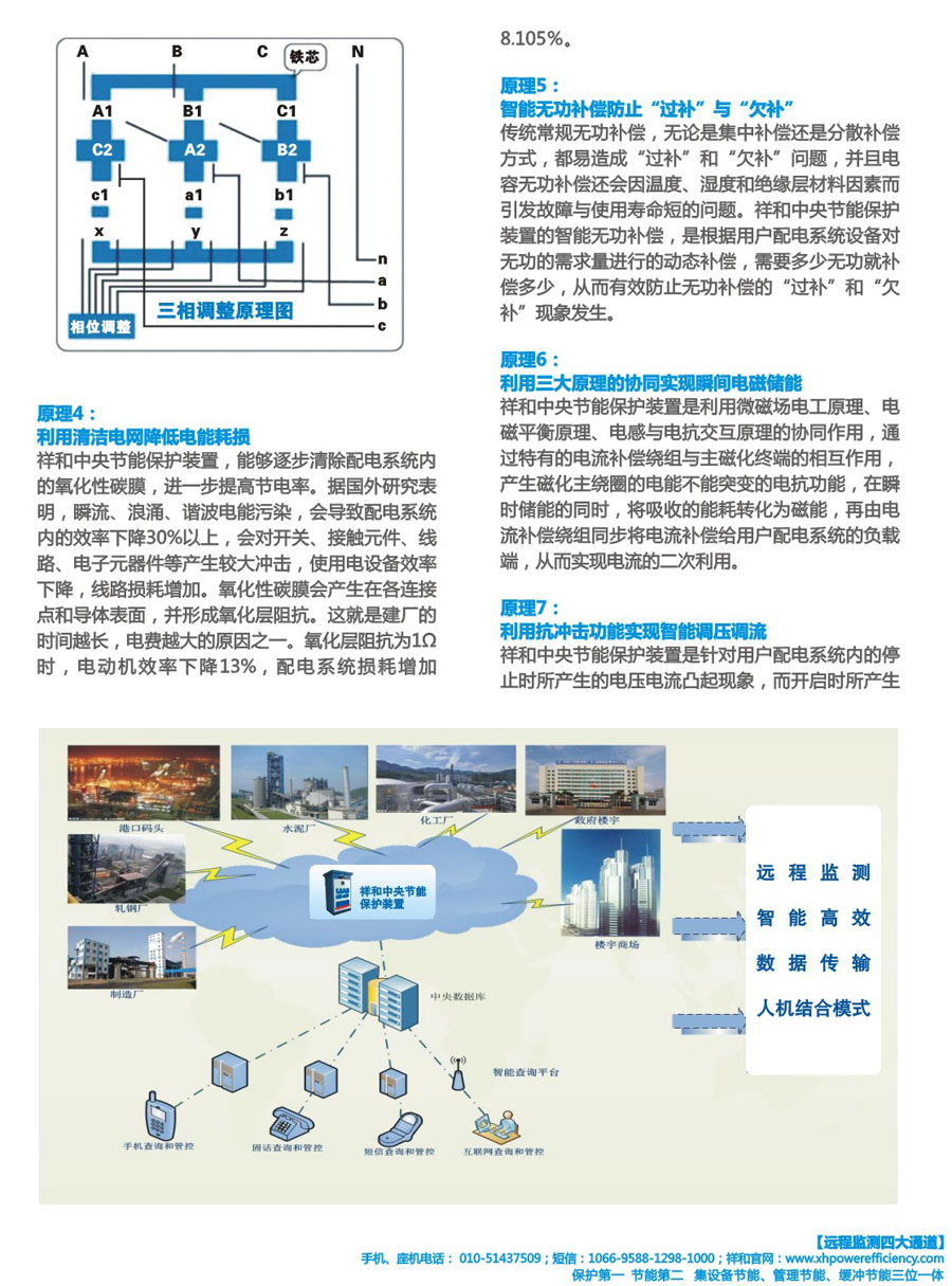 祥和中央節(jié)能保護(hù)裝置,即祥和電效云端保護(hù)裝置系列產(chǎn)品,是在當(dāng)今互聯(lián)網(wǎng)+、工業(yè)4.0、中國制造2025時(shí)代,由位于成都高新區(qū)的祥和節(jié)能集團(tuán),率領(lǐng)成都雙贏產(chǎn)業(yè)生態(tài)園有限公司,研發(fā)、制造的電信級(jí)網(wǎng)絡(luò)+中央節(jié)能保護(hù)設(shè)備,是由安裝在用戶配電系統(tǒng)電能入口端的祥和中央節(jié)能保護(hù)設(shè)備,與中央數(shù)據(jù)庫在北京的祥和電信級(jí)管理節(jié)能平臺(tái),通過移動(dòng)網(wǎng)、固話網(wǎng)、短信網(wǎng)和互聯(lián)網(wǎng)連接而成的高科技節(jié)能產(chǎn)品,具有中央節(jié)能、中央保護(hù)、減排(碳)、清潔電網(wǎng)、遠(yuǎn)程監(jiān)測和管理節(jié)能六大獨(dú)特功能,其設(shè)備節(jié)電率高達(dá)7%-32%,管理節(jié)能的節(jié)電率高達(dá)5%-25%,還能提高功率因數(shù)5%-8%,擴(kuò)大容量5%-10%,所采用的基于能耗在線監(jiān)測和電磁補(bǔ)償?shù)挠秒姳Wo(hù)節(jié)能技術(shù),已經(jīng)過中國質(zhì)量認(rèn)證中心CQC的認(rèn)證,已通過四川省新產(chǎn)品鑒定,已通過國家輸變電設(shè)備檢測中心的檢測,經(jīng)山東、浙江、北京,四川、重慶等地的紡織、通信、機(jī)械、化工、寫字樓、電子、玩具、網(wǎng)吧等行業(yè)用戶的安裝使用,其節(jié)能節(jié)電效果,保護(hù)設(shè)備和保護(hù)人體健康的優(yōu)勢,備受歡迎。
