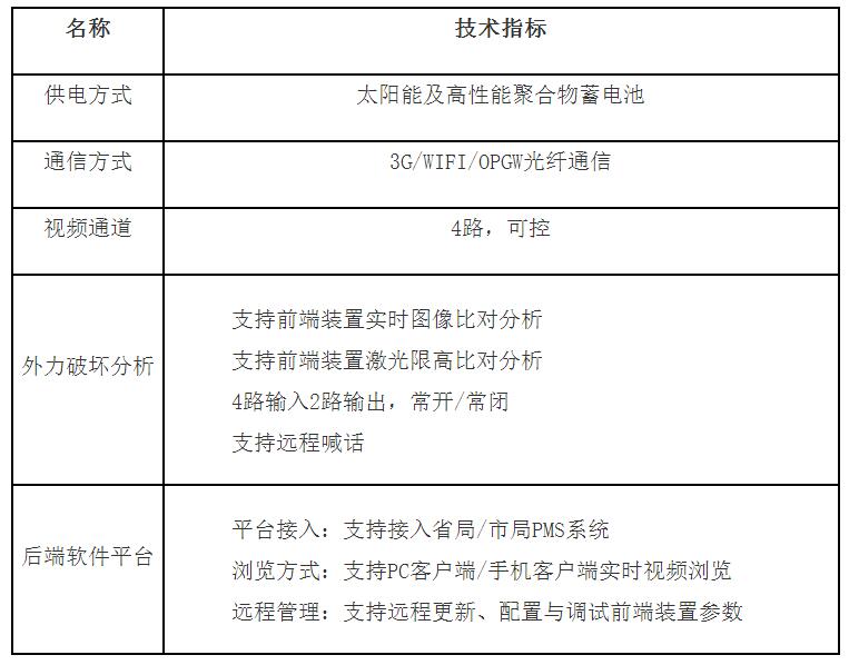 三、輸電線路防外力破壞監(jiān)測系統(tǒng)主要技術(shù)參數(shù)