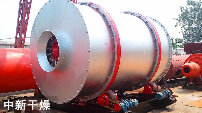 物料由供料裝置進入回轉(zhuǎn)滾筒的內(nèi)層,實現(xiàn)順流烘干,物料在內(nèi)層的抄板下不斷抄起、套筒烘干機落呈螺旋行進式實現(xiàn)熱交換,物料移動至內(nèi)層的另一端進入中層,進行逆流烘干,物料在中層不斷地被反復揚進,呈進兩步退一步的行進方式,物料在中層既充分吸收內(nèi)層滾筒散發(fā)的熱量,又吸收中層滾筒的熱量,同時又延長了干燥時間,物料在此達到最佳干燥狀態(tài)。物料行至中層另一端而落入外層,物料在外層滾筒內(nèi)呈矩形多回路方式行進,達到干燥效果的物料在熱風作用下快速行進排出滾筒,沒有達到干燥效果的濕物料因自重而不能快速行進,物料在此矩形抄板內(nèi)進行充分干燥,由此完成干燥目的。