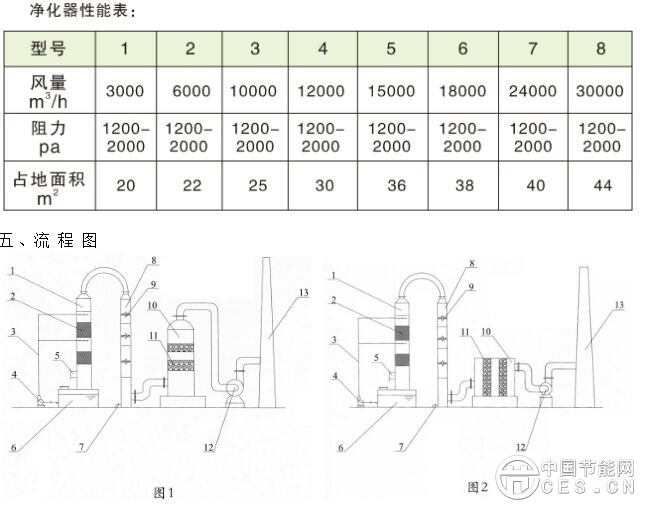設(shè)備結(jié)構(gòu)是濕法處理組件在前,干法處理組件在后,由中間的配套氣液分離器相連接,組成整體凈化設(shè)備。
