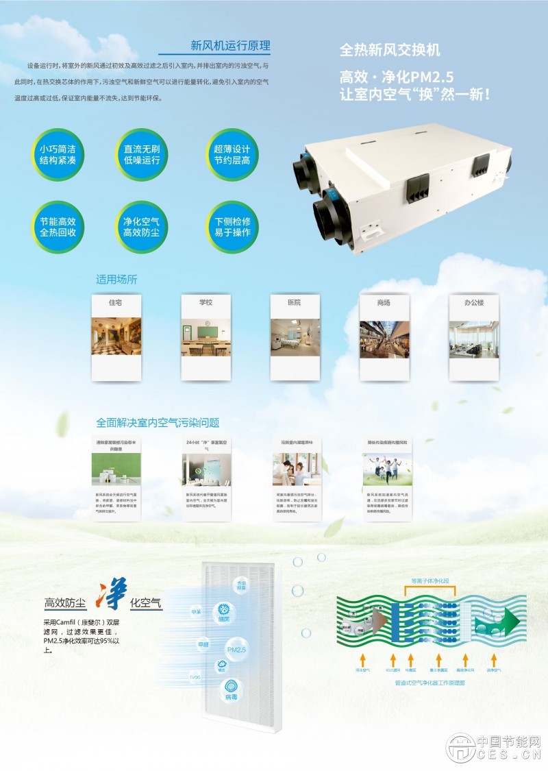 1、新風(fēng)交換,送入室外新鮮空氣,排出室內(nèi)污濁空氣。