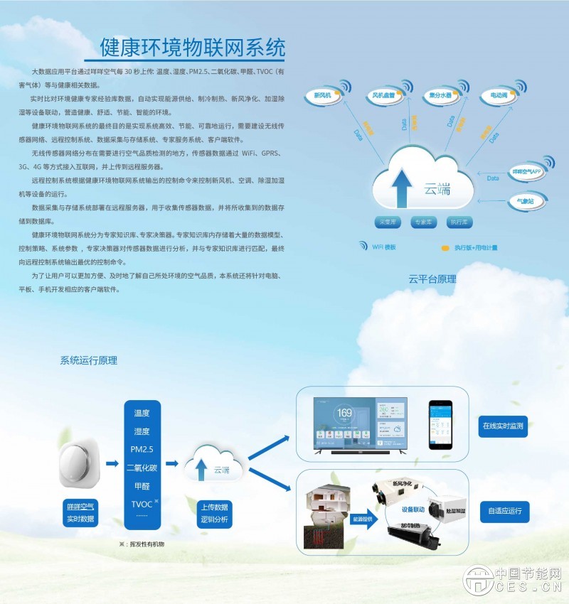 大數據應用平臺通過咩咩空氣每30秒上傳:溫度、濕度、PM2.5、二氧化碳、甲醛、TVOC(有害氣體)等健康相關數據。實時比環(huán)境健康專家經驗庫數據,自動實現(xiàn)能源供給、制冷制熱、新風凈化、加濕除濕等設備的聯(lián)動,營造健康、舒適、節(jié)能、智能的環(huán)境