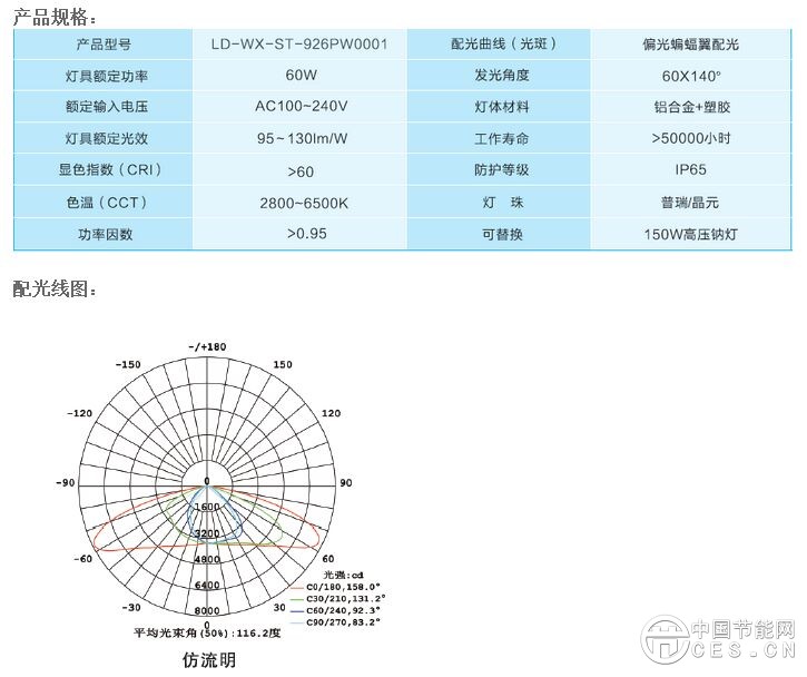 4.偏光蝙蝠翼配光,光利用率高,更適合道路照明光學(xué)要求比,比高壓鈉燈節(jié)能60%以上;