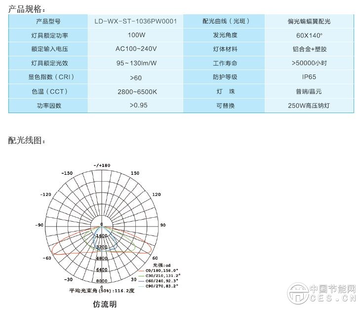 4.偏光蝙蝠翼配光,光利用率高,更適合道路照明光學(xué)要求比,比高壓鈉燈節(jié)能60%以上;