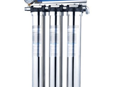 配置:20寸不銹鋼外殼、三級(聚丙烯熔噴濾芯+炭棒濾芯+PAN中空超濾)