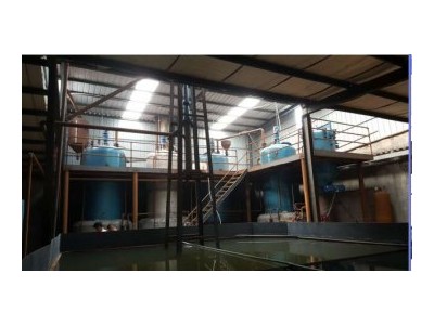 生產(chǎn)過程中不用高溫裂解,不用酸堿洗第一步將各種廢機(jī)油打入脫水、脫氫罐加熱到150度左右脫水、脫氫來提高閃點(diǎn);第二步油溫降到80度時(shí)將油打入脫膠罐中加入脫膠劑、沉降劑攪拌30分鐘后脫膠提高亮度;第三步脫色,油品溫度降到60度將油打入脫色罐中加高效脫色劑攪拌30分鐘, 然后沉淀1小時(shí)(以客戶所帶油品為主),過濾機(jī)過濾即成基礎(chǔ)油(處理一噸廢機(jī)油做成啤酒色需要化工原料200元左右;做成接近水白色需要450元的化工原料;做成水白色需要800元左右的化工原料),出油率高達(dá)85%以上,指標(biāo)完全達(dá)到國家再生基礎(chǔ)油標(biāo)準(zhǔn)。然后調(diào)和成柴油。整個(gè)生產(chǎn)過程不冒煙、無異味、無噪音、無廢水、無污染,完全達(dá)到國家安全環(huán)保要求。
