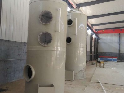 噴淋塔是工業(yè)生產酸霧廢氣處理設備之一,工業(yè)酸霧廢氣是由進風管引入噴淋塔,首先經過填料層,此時廢氣與氫氧化鈉吸收液兩相充分接觸互相吸收進行中和反應,酸霧廢氣經過凈化后,再經除霧板脫水除霧后由風機排入大氣。吸收液在塔底經水泵增壓后在塔 頂噴淋而下,最后回流至塔底循環(huán)使用。凈化后的酸霧廢氣達到地方省排放標準的排放要求,低于國家排放標準。