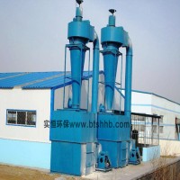 擴(kuò)散式旋風(fēng)除塵器筒身呈倒圓錐形,減少了含塵氣體自筒身中心短路直接到出口去的可能性,設(shè)備本身增加并裝有圓錐形的反射屏裝置,防止兩次氣流將已經(jīng)分離下來(lái)的粉塵重新卷起,并防止粉塵被上升氣流帶出筒體。