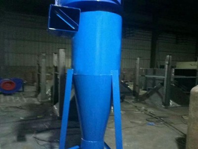 CLK擴散式旋風除塵器的另一特點是產品設計增加一個較大的灰斗。由于顆粒粉塵會夾帶少量氣體從錐體底部旋轉進人灰斗,灰斗圓柱體直徑一般取筒體直徑的1.65倍?;颐嫔喜康目臻g高度取簡體直徑的1倍,這樣灰斗存灰以后粉塵隨之升高會導致氣流攜帶出粉塵,所以,設備工作時應及時清灰或連續(xù)排灰。