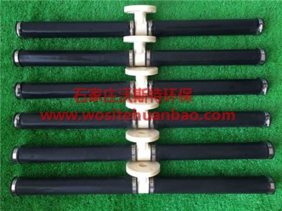管式橡膠曝氣器是我公司研制開發(fā)的新型管式橡膠曝氣器,該產(chǎn)品主要用于城市污水和有機(jī)工業(yè)廢水處理系統(tǒng)的充氧,其具有結(jié)構(gòu)簡單、氧利用率高、性能可靠、氣孔不易堵塞、污水不倒灌、環(huán)向受力均勻、壽命長、安裝維修方便、系統(tǒng)價格低廉等特點。該產(chǎn)品長期以來一直是依賴進(jìn)口,我公司對其進(jìn)行了深入研究,使其各項性能均達(dá)到國際同類產(chǎn)品水平,可為節(jié)約大量的外匯,并且推進(jìn)我國在微孔曝氣器領(lǐng)域的研究。