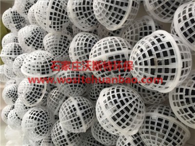 球形懸浮填料, 又稱多孔旋轉(zhuǎn)球形懸浮填料 ,是對(duì)國(guó)內(nèi)處理污水、生物膜法處理技術(shù)采用的多種填料中開發(fā)的最新系列產(chǎn)品。分內(nèi)外雙層球體,外部為網(wǎng)狀球體,內(nèi)部為旋轉(zhuǎn)球體。