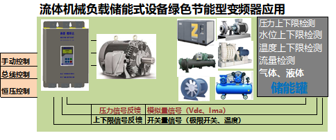 流體機(jī)械負(fù)載(風(fēng)機(jī)、泵浦、空氣壓縮機(jī)、中央空調(diào)冷凍壓縮機(jī)、液壓機(jī)械等)調(diào)功(調(diào)整流量)節(jié)能控制,運(yùn)行到額定轉(zhuǎn)速時可工頻旁路或輕載節(jié)能運(yùn)行,運(yùn)行效率達(dá)到99.99%,幾乎沒有運(yùn)行損失而且沒有任何環(huán)境污染問題。