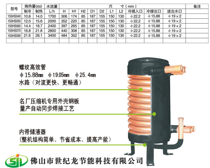 5P殼管換熱器,熱泵熱水器專用高效熱交換器換熱器118HS050
