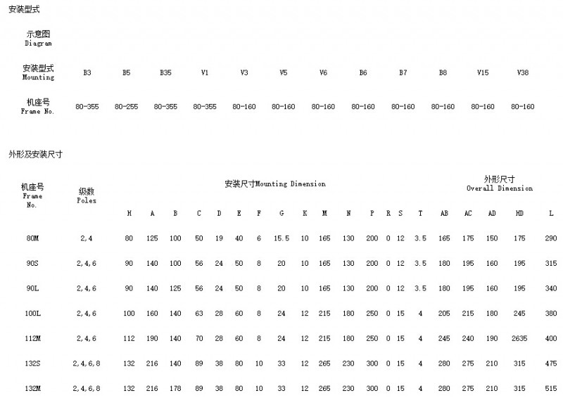 2)B5型機(jī)座無(wú)底腳,端蓋上無(wú)凸緣,無(wú)尺寸A、B、C、AB。