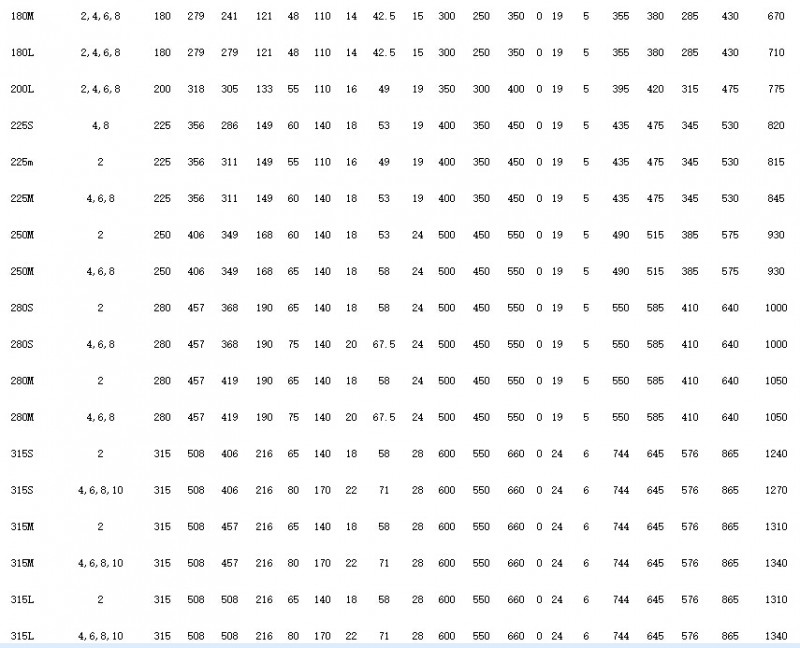 4)H225-H355電機(jī)凸緣安裝孔S為8空均布。
